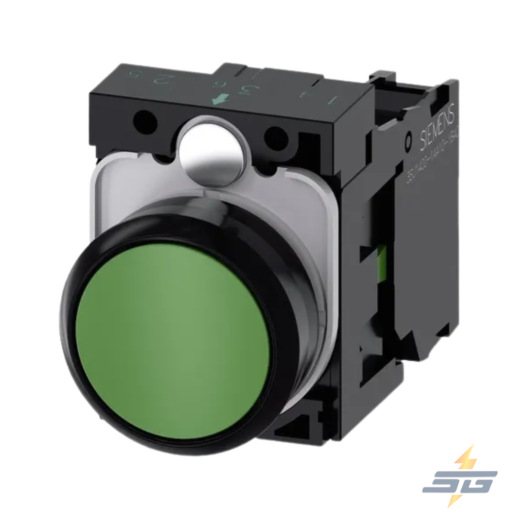 Boton Pulsador, 22 mm, redondo verde, tipo de contacto moment‡neo, con soporte 1 NO